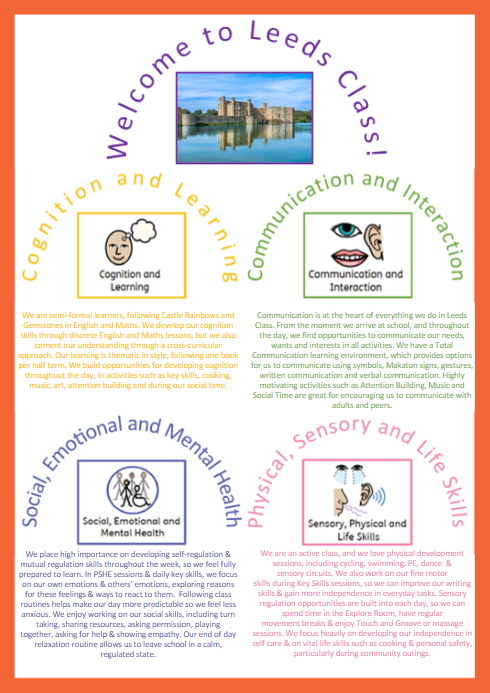 A warm welcome to Leeds class, we are a group of semi-formal KS3 pupils who like to have fun! We are thinkers, communicators, readers, writers, mathematicians, musicians, friends, and so much more. Each half term we have an overarching theme and a book which we base our learning on. In Leeds class there is an overarching focus on maintaining engagement, building attention, total communication, self-regulation and developing independence.