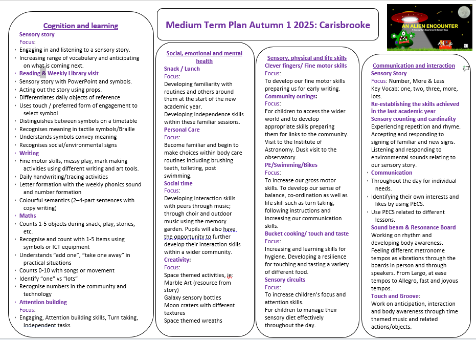 Carisbrooke Class is a joyful, inclusive class, on the pre-formal proactive pathway, where we follow a sensory curriculum that supports each child’s communication, independence, and well-being.