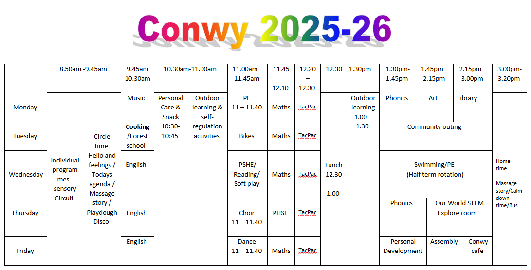 Conwy class is a class with a mix of semi-formal and pre-formal learners, preparing them for an independent life in the wider world.