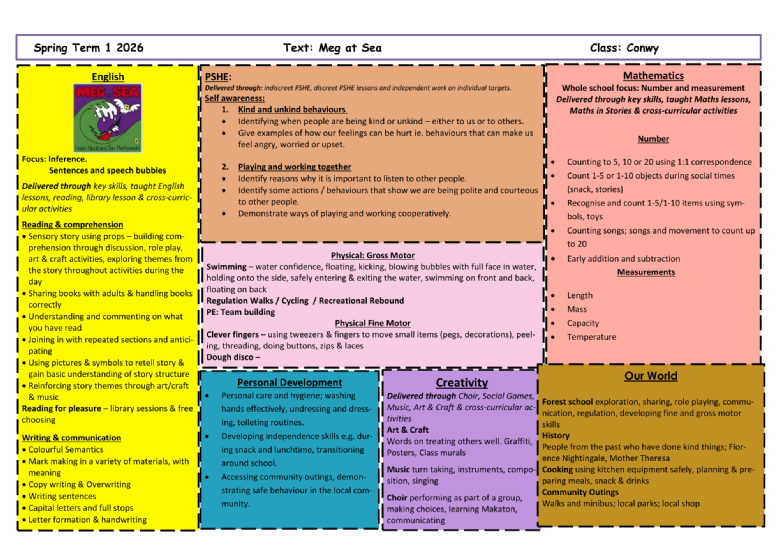 The curriculum is delivered through a blend of specialist interventions and engaging and motivating experiences, adapted and enriched through the half-termly story and theme.