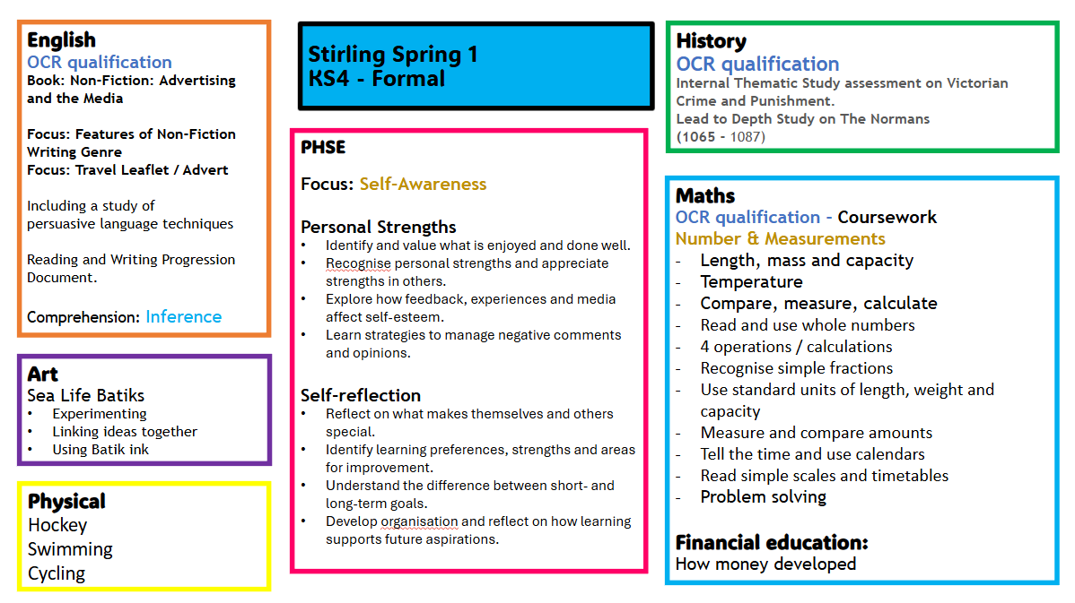 Stirling is a formal Key Stage 4 class for students in Years 10 and 11. We follow a broad, rich and engaging curriculum. The learning has a particular focus on skills for life.