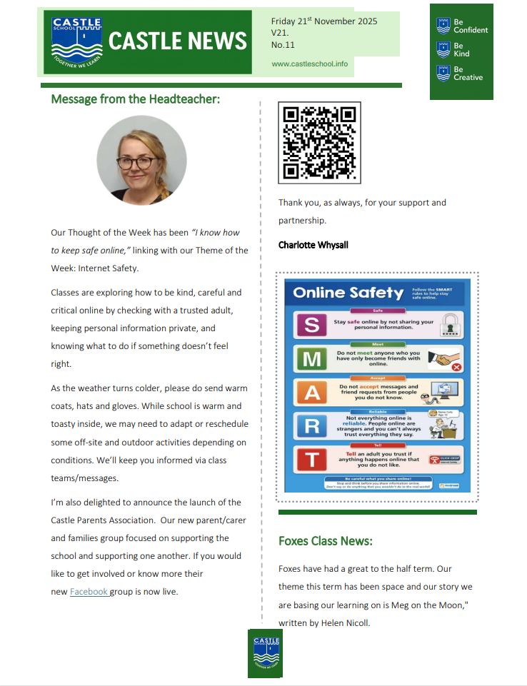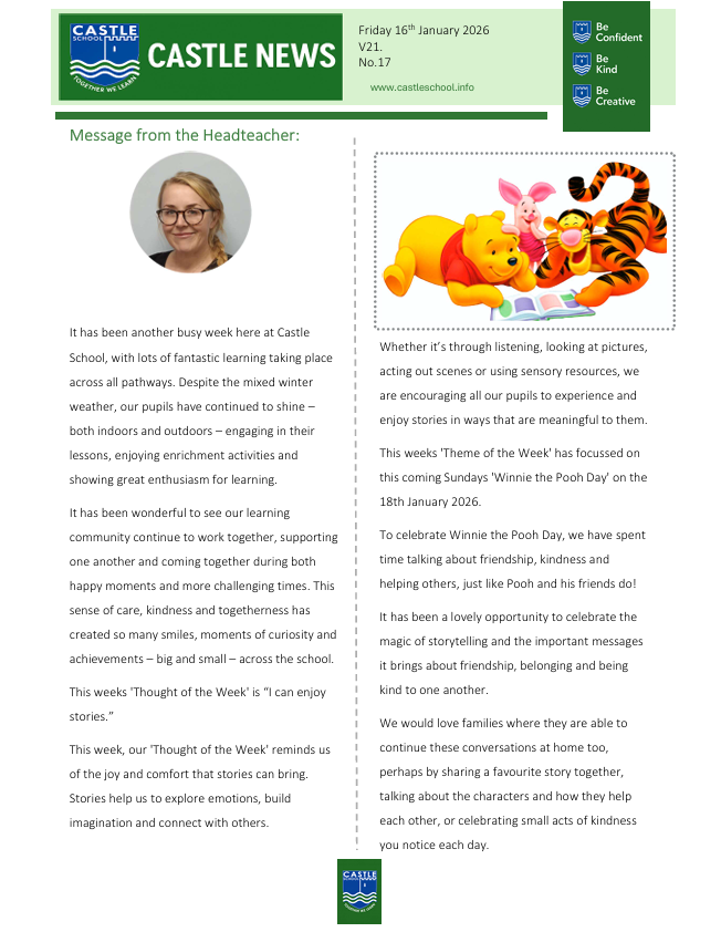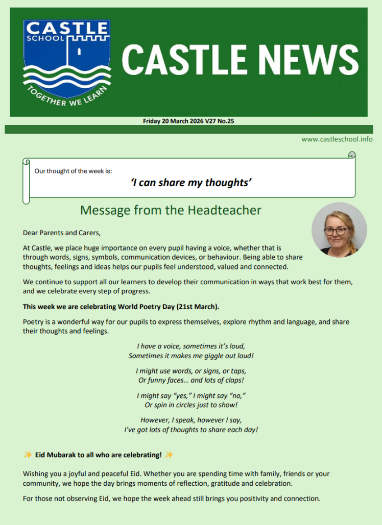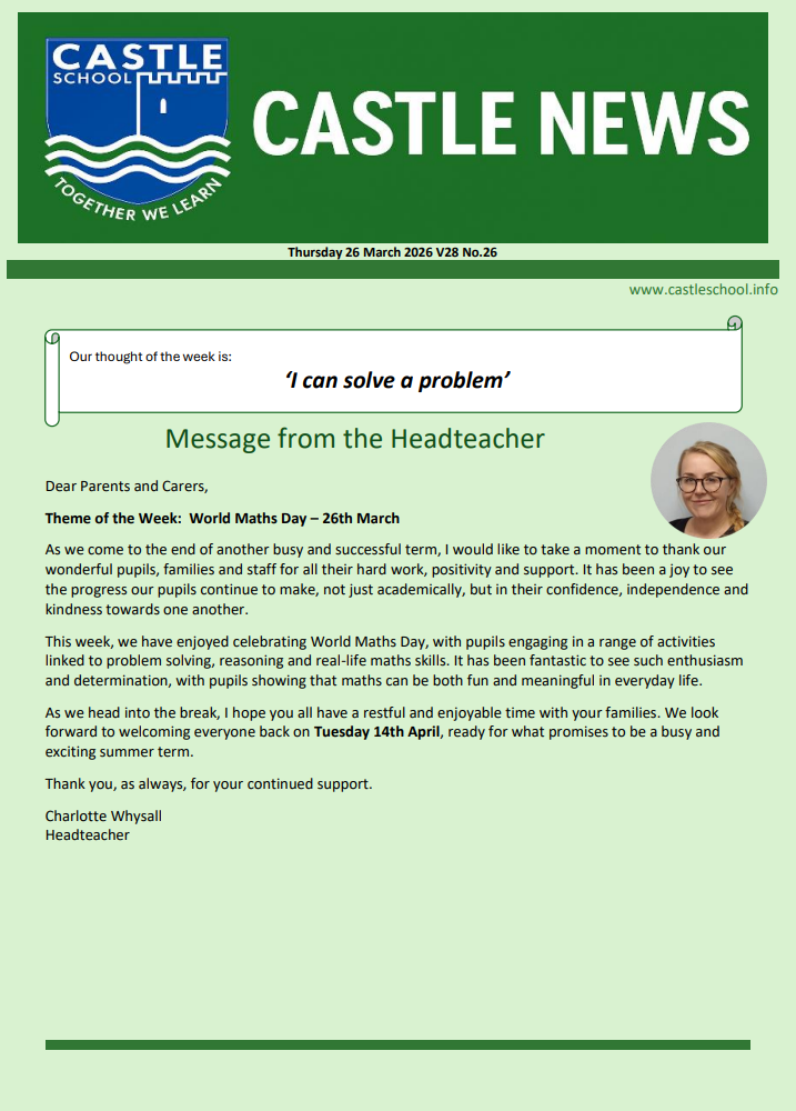 By clicking below, you can see the latest newsletter sent out by Castle School!