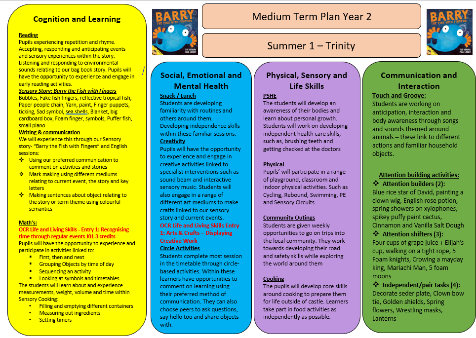 Students in Trinity Class follow the OCR Life and Living Skills Framework, working towards 2-3 different areas each term over three years to gain a qualification. We also conduct yearly assessments aligned with the Engagement Model so that we can meet students at their individual learning levels. We celebrate every achievement, big or small, through regular observations and reflections on Evidence for Learning, highlighting each pupil’s progress and success.